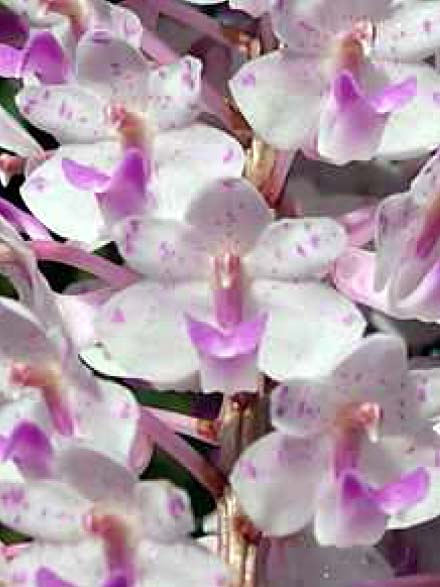 Kopou phool (Rhynchostylis retusa), a type of orchid, in bloom. Nagaland is home to 396 species of orchids, belonging to 92 genera of which 54 having horticultural and medicinal economic importance. Kopou is also used for festive hairstyle decoration by women in India's northeast. The State generates 87.98 MU compared to a demand for 242.88 MU. This deficit requires Nagaland to buy power. The State has significant hydroelectric potential, which if realized could make the State a power surplus State. In terms of power distribution, every village and town, and almost every household has an electricity connection; but, this infrastructure is not effective given the power shortage in the State.