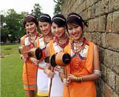 A Naga woman dressed for her festival. Nagaland is known in India as the land of festivals. The diversity of people and tribes, each with their own culture and heritage, creates a year long atmosphere of celebrations. In addition, the State celebrates all the Christian festivities. Traditional tribe-related festivals revolve round agriculture, as a vast majority of the population of Nagaland is directly dependent on agriculture. Some of the significant festivals for each major tribe are: