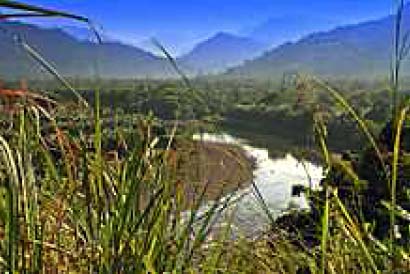 Mountainous terrain of Nagaland Nagaland is largely a mountainous State. The Naga Hills rise from the Brahmaputra Valley in Assam to about 2,000 feet (610 m) and rise further to the southeast, as high as 6,000 feet (1,800 m). Mount Saramati at an elevation of 12,601.70 feet (3,841.00 m) is the State's highest peak; this is where the Naga Hills merge with the Patkai Range in Burma. Rivers such as the Doyang and Diphu to the north, the Barak river in the southwest and the Chindwin river of Burma in the southeast, dissect the entire State. 20 percent of the total land area of the State is covered with wooded forest, rich in flora and fauna. The evergreen tropical and the sub tropical forests are found in strategic pockets in the State. Climate